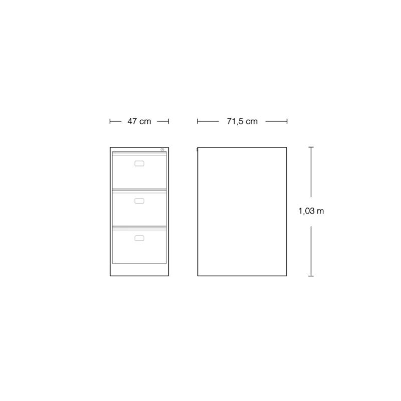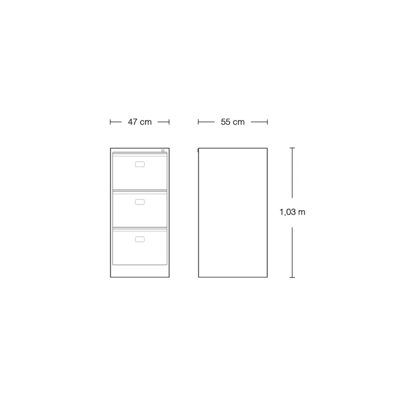 Para pastas suspensas tamanho ofício Armação para pastas suspensas fixos Cinto de travamento interno Sistema de deslizamento de gavetas em nylon Sistema de travamento simultâneo de gavetas com fechadura tipo yale Tratamento para pintura por meio de fosfatização e pintura eletrostática a pó com secagem em estufa a 200 graus