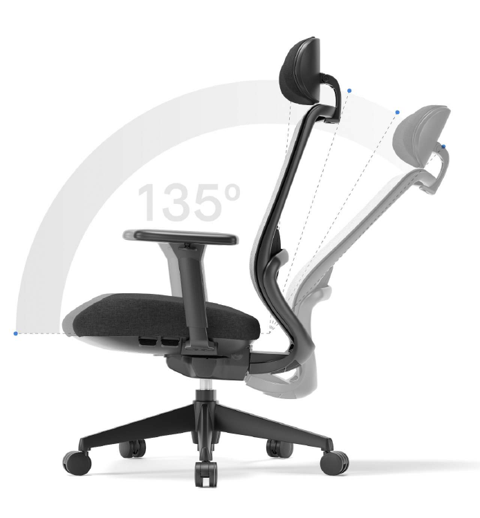 Com inclinação ampla que alcança até 135°, o encosto permite uma postura próxima ao deitar, proporcionando um nível elevado de relaxamento sempre que o objetivo for desacelerar e descansar o corpo.