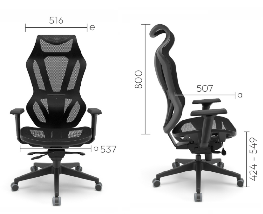 Base Construída em aço/metal preto, garantindo maior resistência e durabilidade, rodizio em P.U ( POLIURETANO), macio e anti-risco, mobilidade suave e proteção do piso, mecanisco Relax System oferencendo ajuste ergonomica para inclinação.